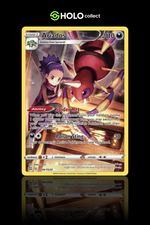 Ariados crawls beside its Trainer, ready to strike, in this richly detailed Trainer Gallery card from Brilliant Stars. The art features warm wood tones and sharp webbing lines, capturing Ariados’ stealthy presence with clean outlines and subtle lighting. A perfect piece for collectors who appreciate dynamic Trainer-Pokémon pairings.